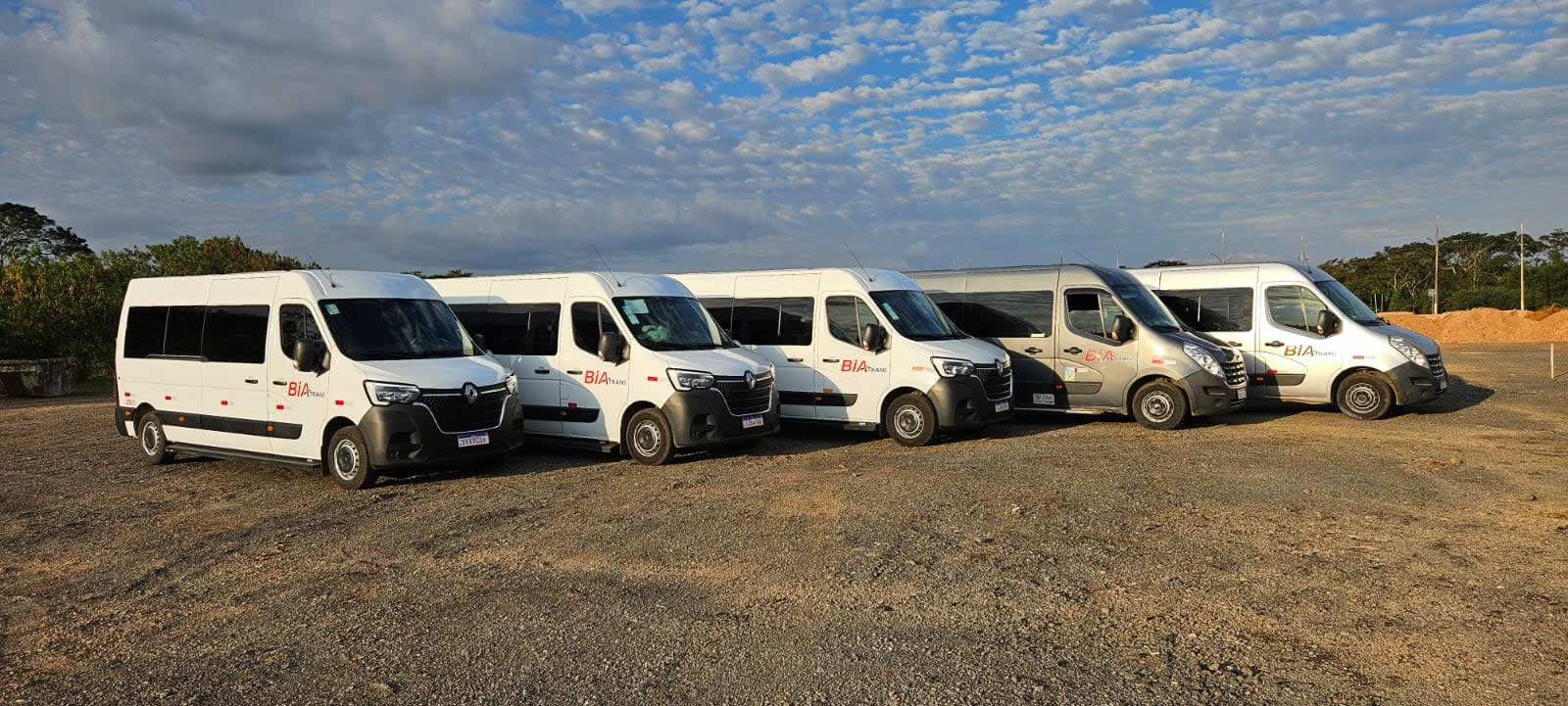 BIA TRANSPORTES coloca a sua disposição e da sua empresa uma frota de vans, micro-ônibus e ônibus que se adequa perfeitamente à sua demanda. Todos os Veículos cadastrados são revisados preriodicamente, sendo assim trabalhamos com uma frota que seguem um rigoroso sistema de manutenção preventiva, que gera maior conforto e segurança aos nossos passageiros.